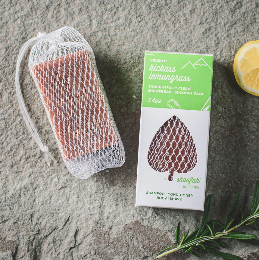 RedBudSuds Kickass Lemongrass 3.4oz Travel Shower Bar & Shoofah